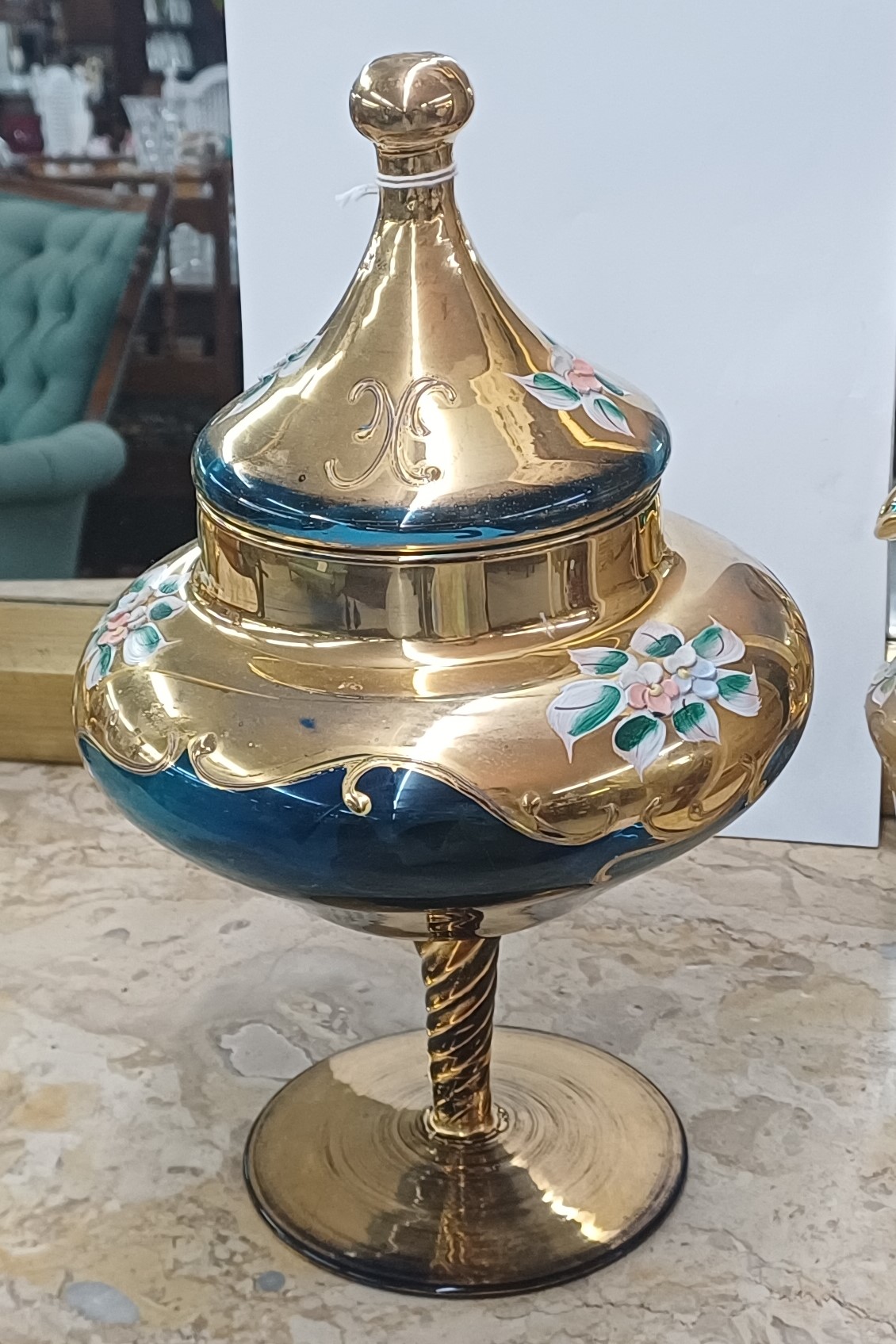 ANTIQUE MURANO HAND PAINTED ITALIAN COBALT BLUE & GOLD CANDY DISH