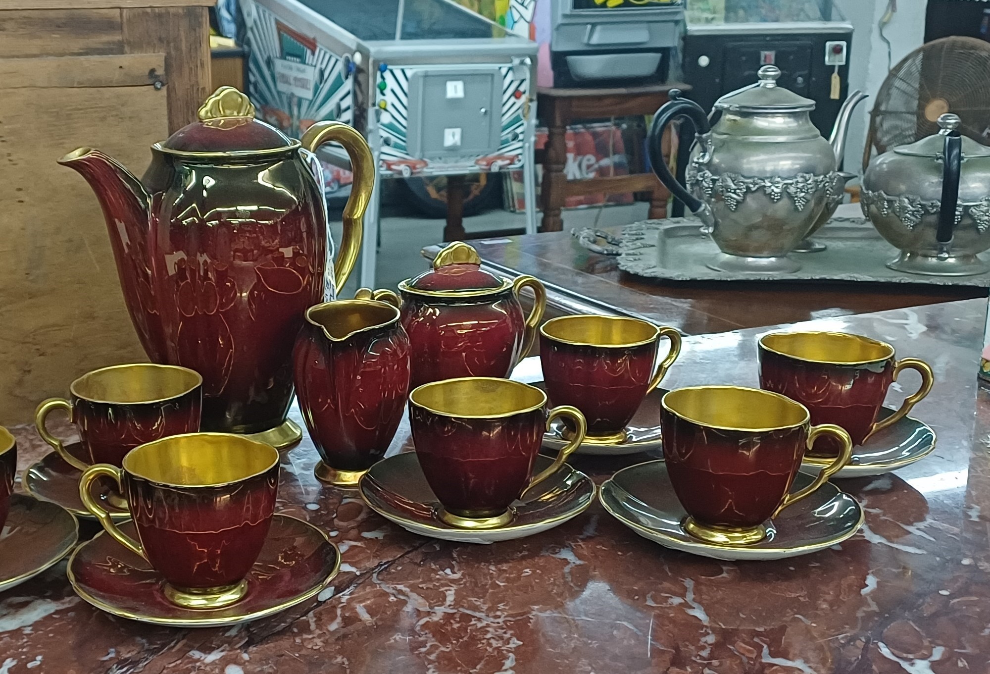 ART DECO CARLTON WARE MAROON COFFEE SET 1950's