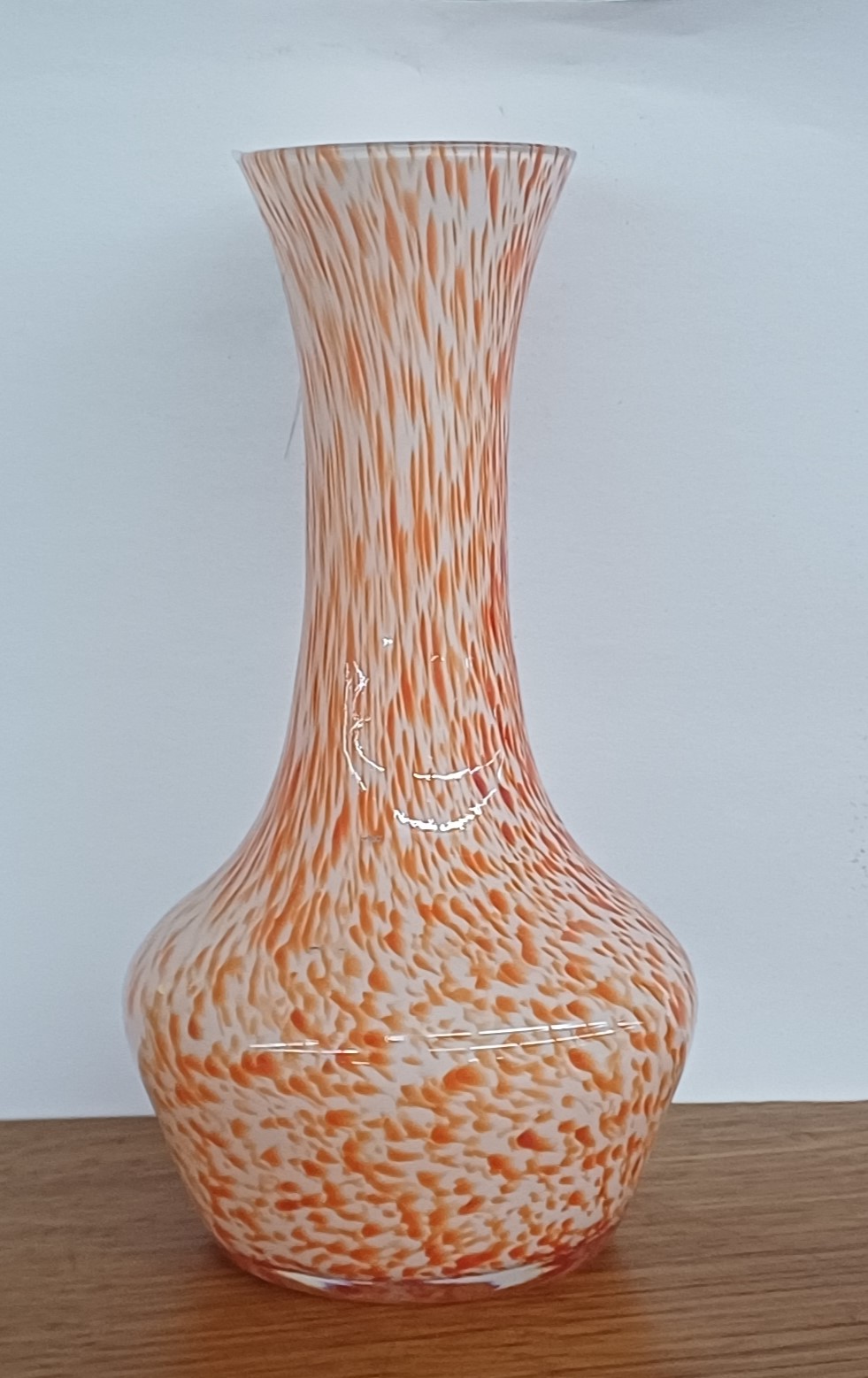 2. » VINTAGE HAND BLOWN ORANGE SPATTERED GLASS VASE